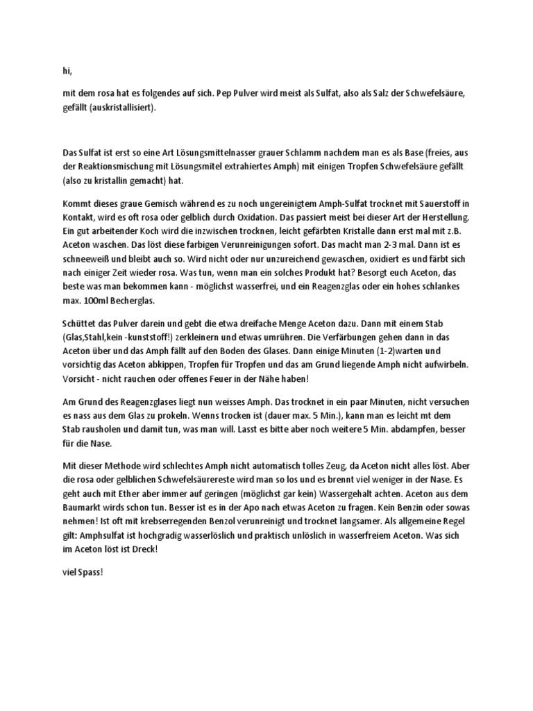 Web Amphetamin Speed ist eine Mischung verschiedener Amphetamine mit Verschnittstoffen. Anschliessend füllen Sie die Mischung mit ca. Die Verfrbungen gehen dann in das Aceton ber und das Amph fllt auf den Boden des Glases.